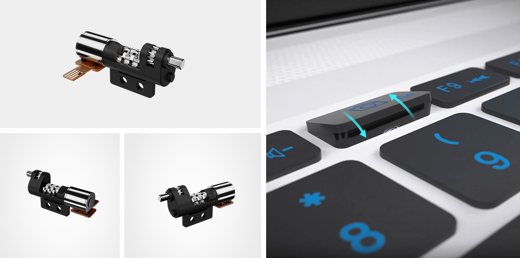 据了解,随着笔记本逐步的轻薄化,也有厂商开始追求极致的轻薄,追求极窄边框,因此需要缩小屏幕周围边框,然而这正是大多数电脑摄像头的安装位置。为此,3118云顶集团别出心裁,开发出一款带翻转功能的隐藏式摄像头驱动系统,利用紧凑的微型驱动结构,可以在有限的空间内,输出较大力矩,使得摄像头平时处于隐藏状态,当需要时候,只需要按下键盘即可一键弹出。